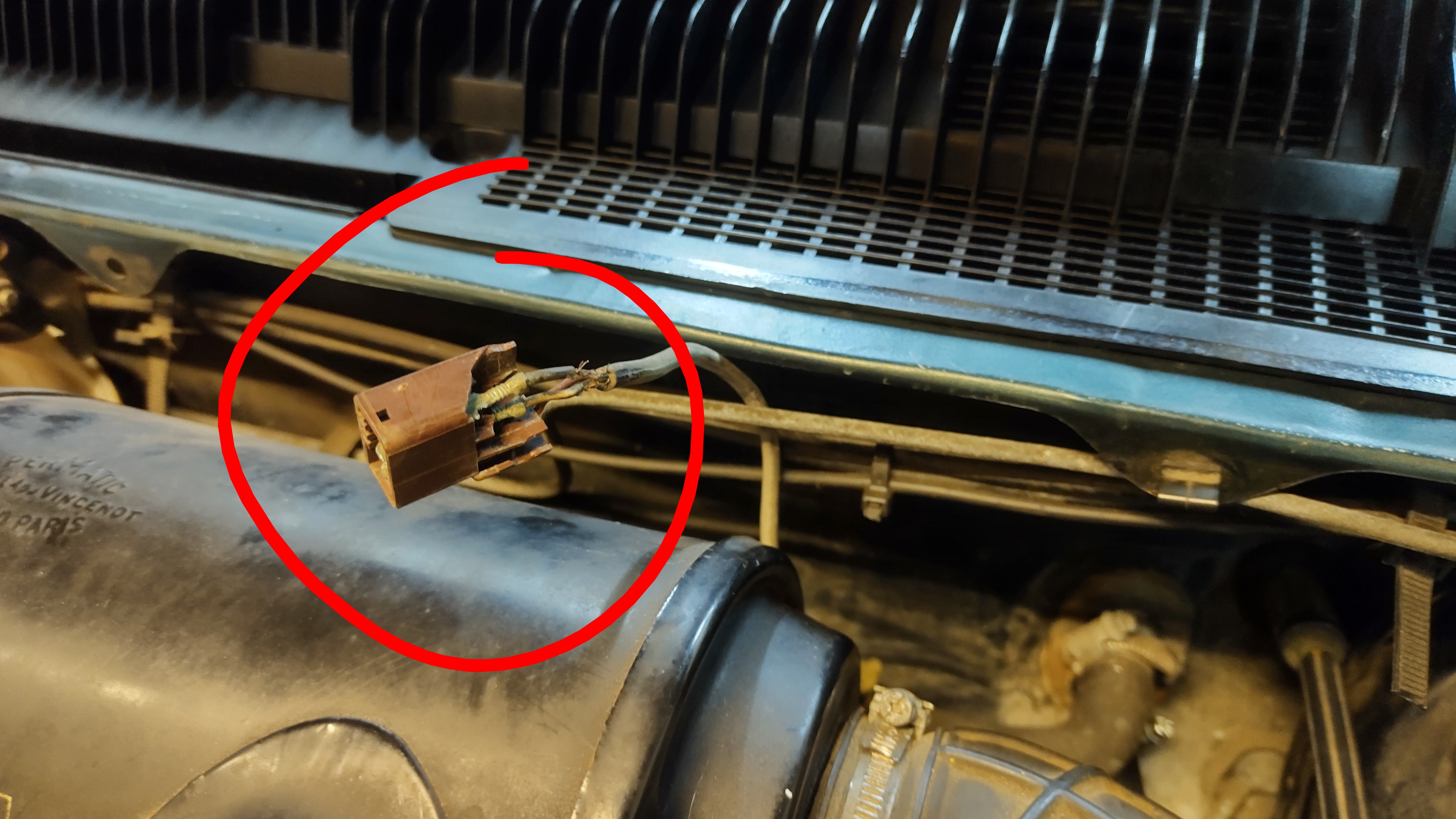 1. kommt zwischen Motor und Spritzwand von ganz tief unten hoch, graues Kabel, brauner Stecker, drei Adern und Kontakte. Bei mir schon ziemlich zerbröselt. Kabel macht bestimmt schon Kurzschluss zwischen zwei Adern. Motor läuft aber, keine Fehlermeldungen:
