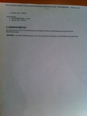 Der nicht so positive Teil dieser Aktion, ich musste 65 Euro bezahlen beim Freundlichen. Warum das so ist konnte mir keiner sagen.