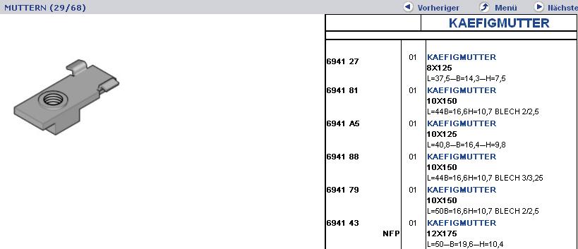 Schau für die seitlichen Holme brauch ich folgende Käfigmuttern, die vor der Montage durch ein rechteckiges Loch eingefädelt werden. Also wenn jemand was hat oder weiß, bin ich für sachdienliche Hilfe dankbar. Normale Muttern kannst im Hohlraum vom Rahmen nicht platzieren und auch nicht festziehen.