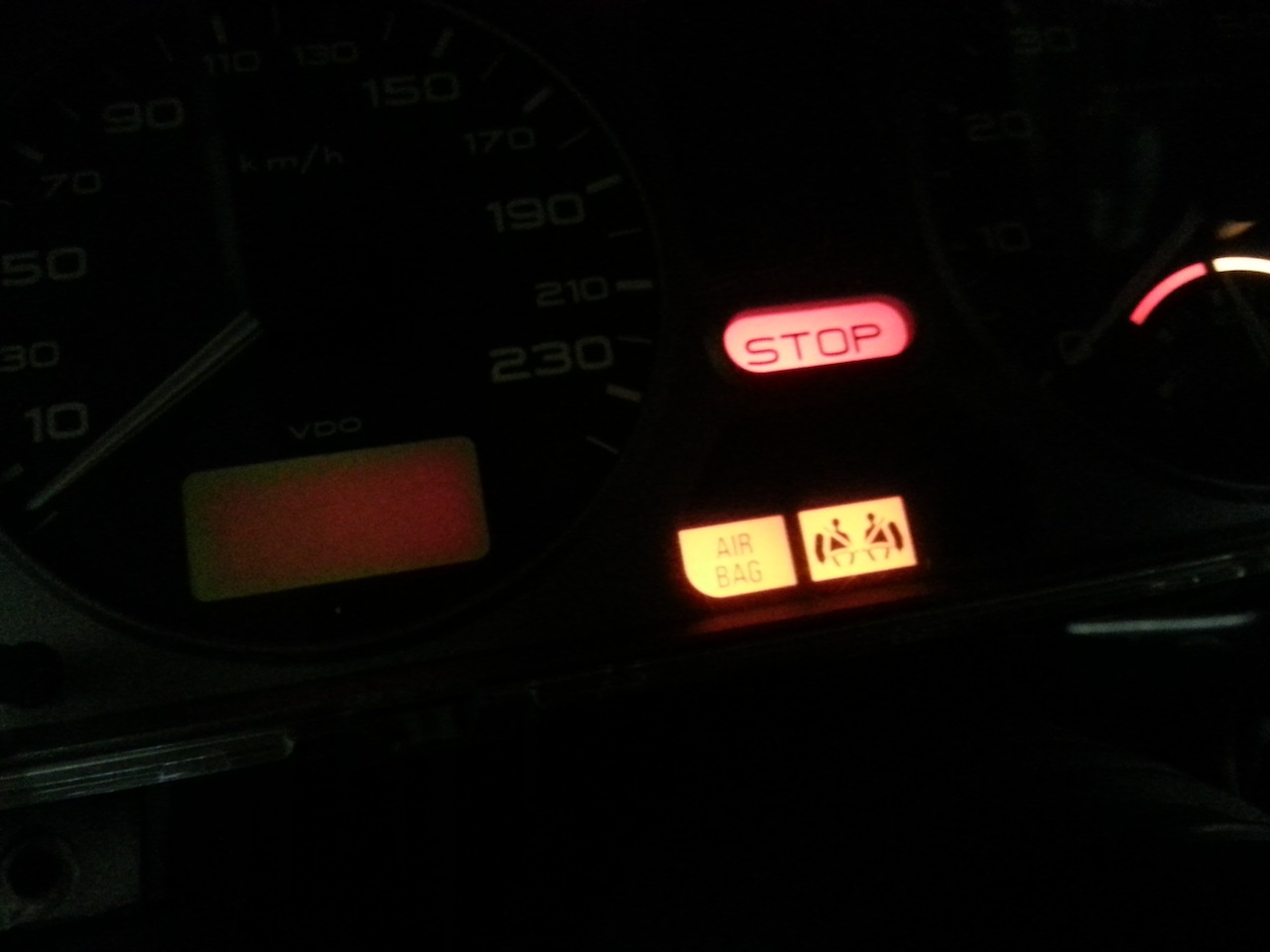 Einmal mit Schrift Airbag und Zeichen mit Seitenairbag bleibt an!Bei uns in Luxembourg kann man Sachalensitze einbauen und auch eintragen lassen.Nur müssen dann Lenkrad und Seitenairbag funtionieren falls vorhanden!