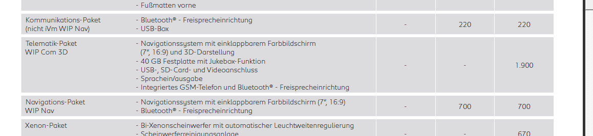 Möchte einfach als Option zum Standard WIP SOUND die WIP Bluetooth 300,00 € ( beinhaltet lt.Preisliste April: USB sowie Aux, Bluetooth Freisprecheinrichtung,Audio Streaming über Bluetooth) ordern.