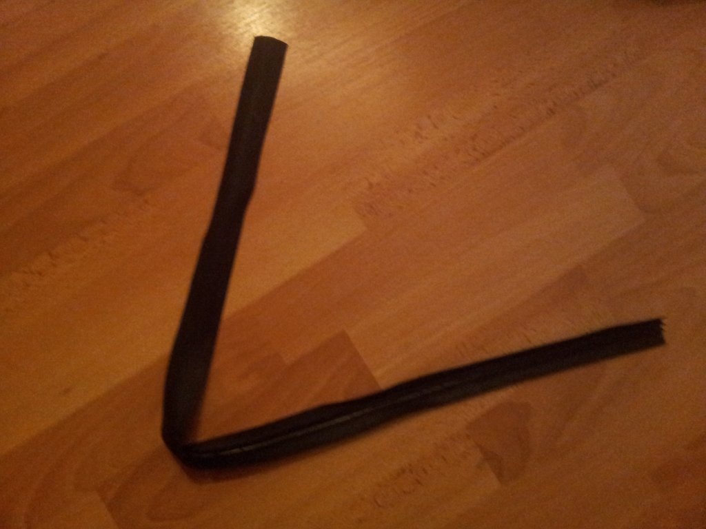 Wie dem auch sei. Ich wollte die Blende schließen, da hielt sie kurz vor Schluss an. Beim Öffnen, schlug die Jalousie dann Falten, bis schlussendlich eine Gummilippe (Foto) aus dem hinteren Schacht hervorlugte.