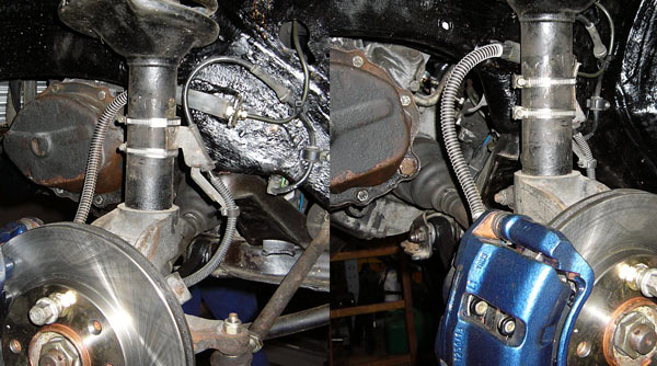 bei dieser variante musste die vorderen bremsleitungshalter am auto abbohren und an anderer stelle - wie beim GTI - neu anschweissen. und entsprechend auch die bremsleitungen kürzen/neu machen. für diese variante haste auch die richtigen schläuche.