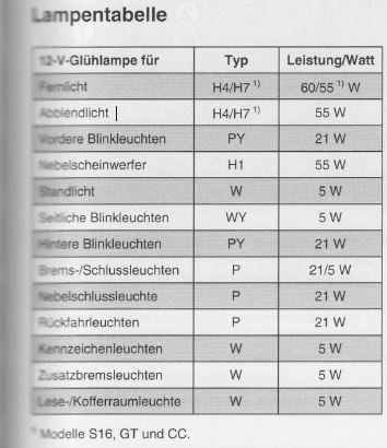 h7 nur bei Modellen S 16, GT und CC.