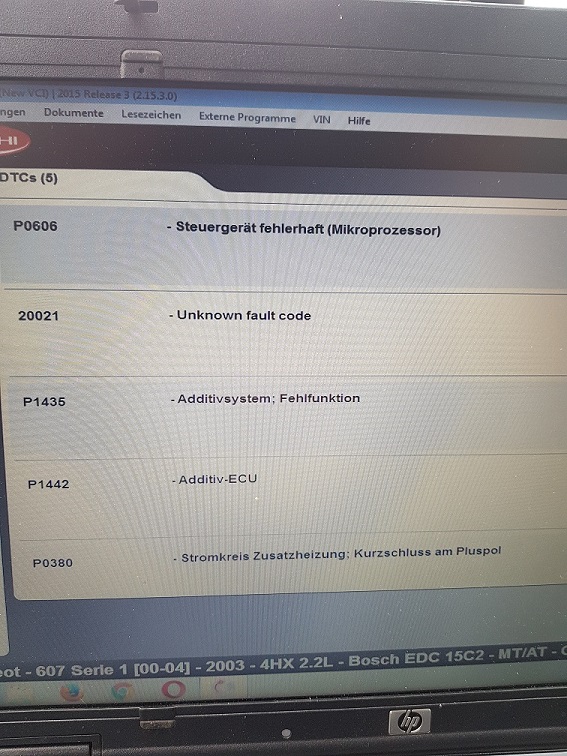 Ich habe es heute ausgelesen mit Delphi Diagnosegerät es kommen wirklich Fehler mit Additiv und eine unknown fehler code siehe das Bild im Anhang.