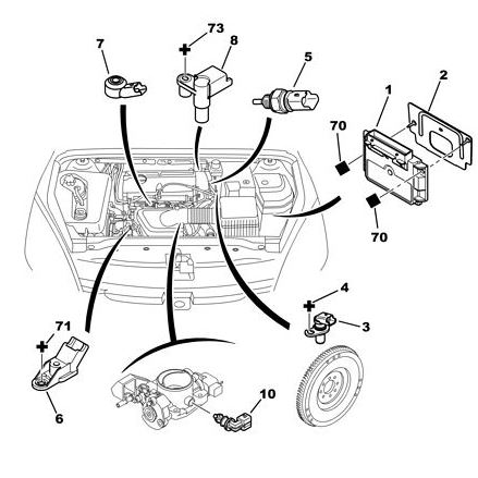 3 ist KW-Sensor (Mittig oben auf dem Getriebe, direkt an der Seite vom Motor)