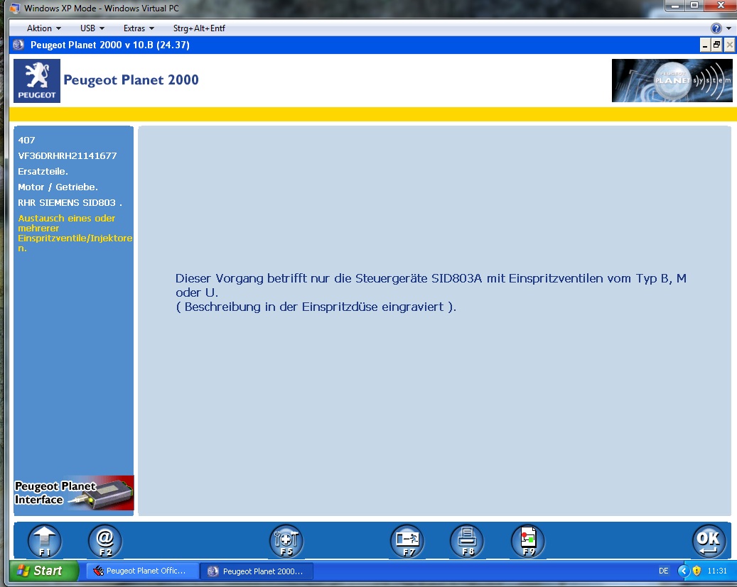 Ich glaube , Motor-Einspritzeinheit, Austausch eines oder mehere Einspritzdüsen, dann Enter Enter ,nur ich komme nicht da hin wo man die Nr. eingibt.