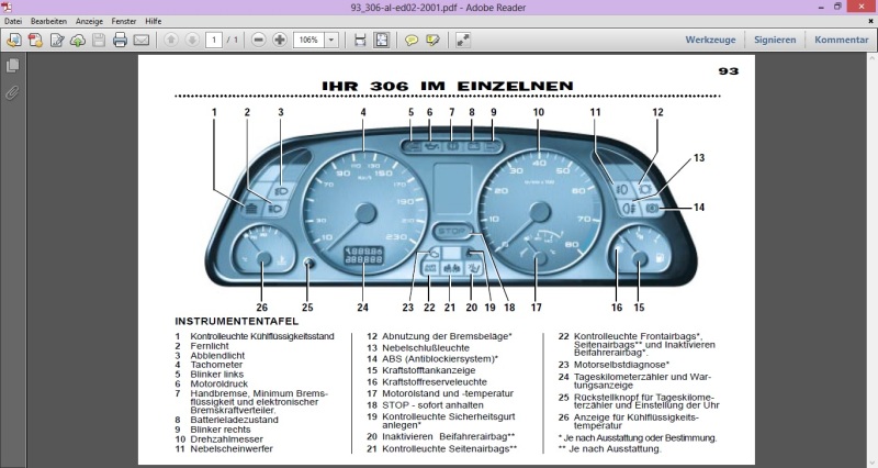 Der Verkäufer war bei einem Peugeot-Händler angestellt, der kennt diverse Tricks und darin lauernde Gefahren (keine HU, arglistige Täuschung). Andererseits passt das nicht zur Mühe, mit der dieser 306 für den Verkauf zurechtgemacht wurde, und den Mängeln, die während des Verkaufs thematisiert wurden (keine ZV ab Fahrertür).sub hat geschrieben:evtl. gebrauchte Kiste gekauft und jemand hatte, aufgrund der Wackler unterm Sitz, die Leuchte kurzerhand ausgebaut um keinen Verdacht zu erwecken?