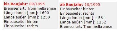 Meine Bremsbacken sind von ATE und wenn ich die verbaute Teilenummer eingebe, dann wird mir angezeigt, das die Bremsbacken aus dem Bendix Bremssystem sind.