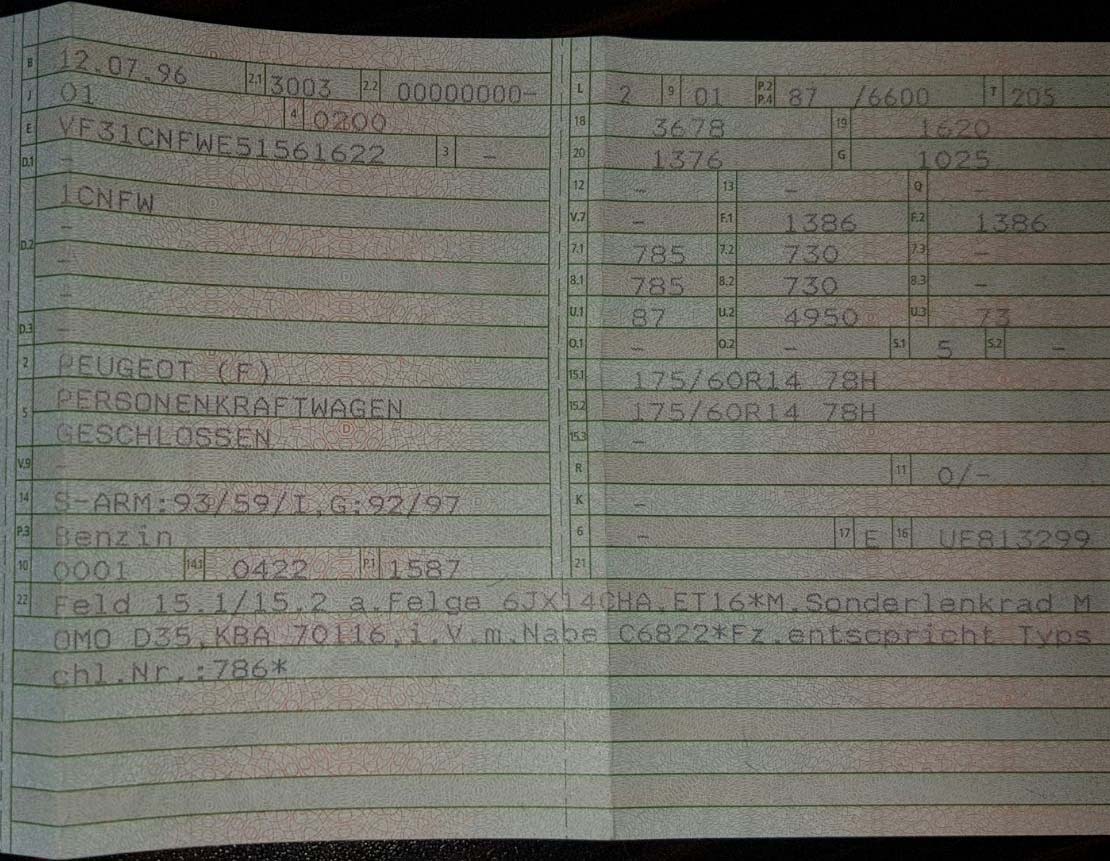 ich habe mir einen 106 Rallye 1.6 8V zugelegt (EZ 07.96 also Serie 2). Das Fahrzeug kommt ursprünglich aus Italien und irgendwie wurde damals von der Dekra etwas falsch umgetragen (von den italienschen zu den deutschen Papieren) Mat hat ihn als S 16 mit 87 kw und EURO 1 eingetragen, leider fehlen die Kopien der originalen italienschen Papiere.