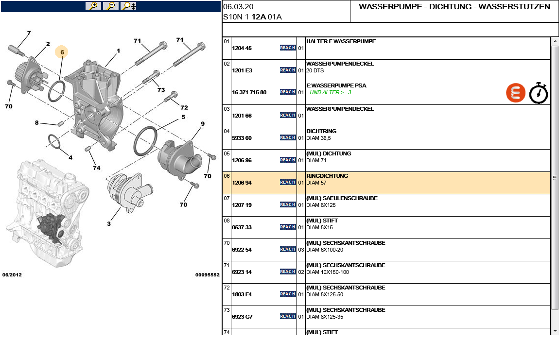 Gibt es irgendwo eine Ersatzteilliste mit Dimensionen, z.B. O-Ringe für das Wasserpumpengehäuse (11 rechts),