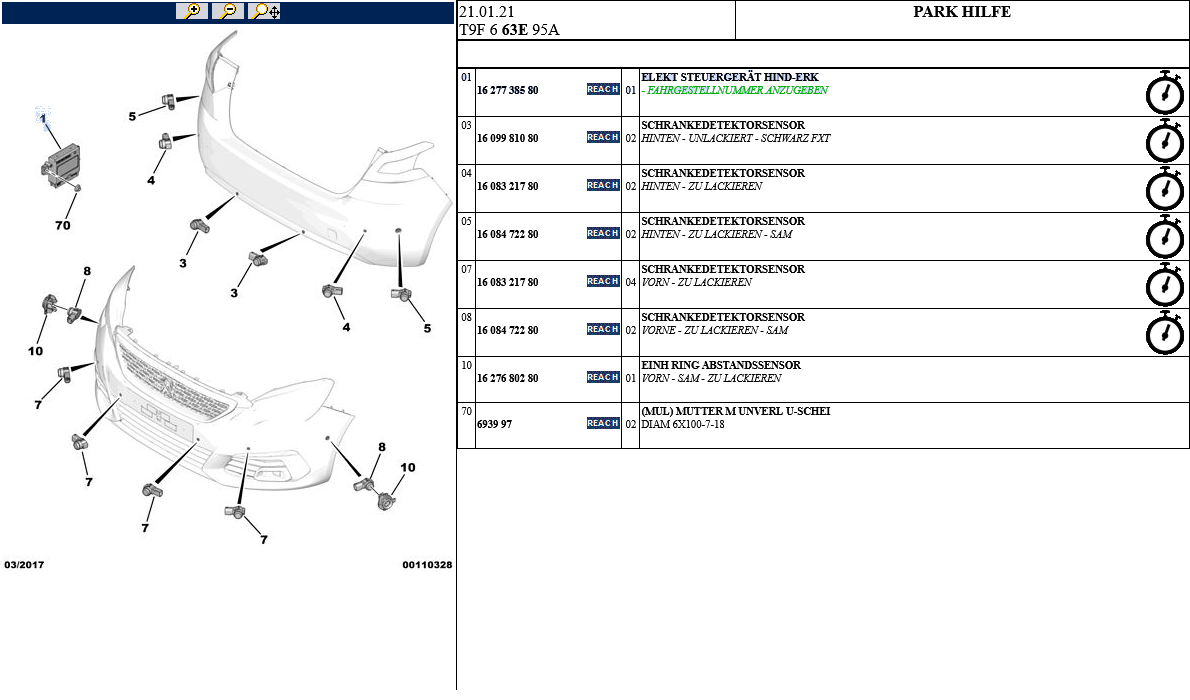 Sensor bestellen und Lackieren lassen. Die Sensoren der Einparkhilfe vom Typ „zu lackieren“ dürfen nur mit einer Lackschicht von 120 Mikrometern (max. Dicke) überzogen werden.