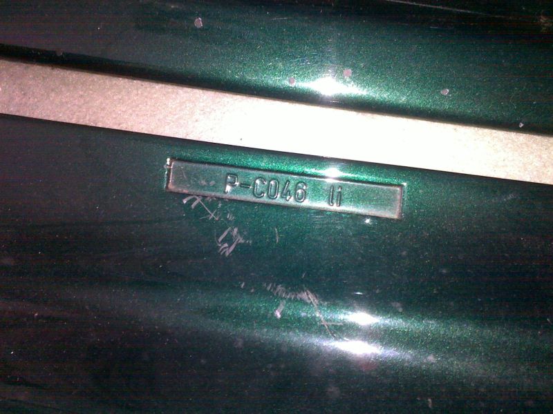 Sie sind dunkelgrünmetallic lackiert, aber fragt bitte nicht nach dem Farbcode. Leider befinden sich einige kleine Steinschläge darauf.