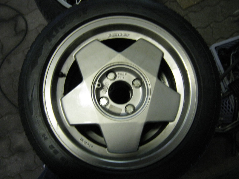ich hab hier einen Satz Borbet A Felgen in 7x15 ET18. Nabendeckel fehlen (kann man aber überall günstig kaufen -> z. B. Ebay), Radschrauben sind mit dabei.