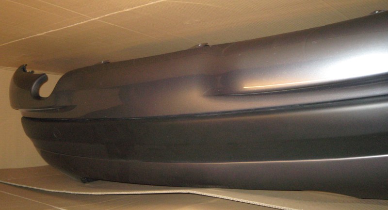 Die Stoßstange weißt KEINE Beulen oder Kratzer im Material auf. Es gibt jedoch die üblichen Gebrauchsspuren die nach drei Jahren (im Sommer 2010 getauscht) auftreten, so z. B. durch das Problem mit dem Kofferraumdeckel, der gelegentlich auf die Stoßstange aufschlägt. Sie weist auch einen winzigen Lackschaden auf. An der seitlichen Befestigung ist eine der Nasen wohl beim Ausbau gebrochen, die werde ich aber noch mit Epoxidharz kleben, danach sollte das wieder wie neu sein.