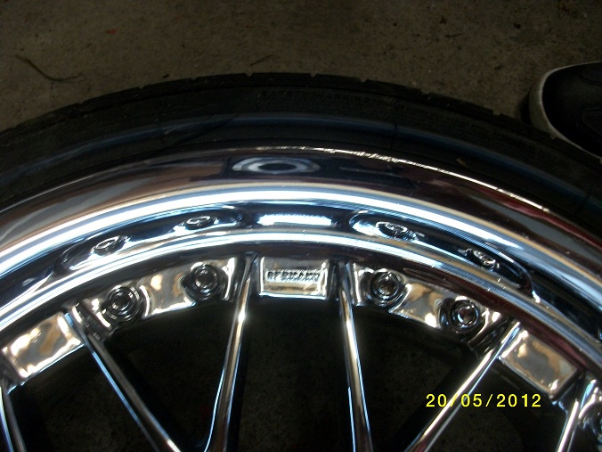 4. Felge: ist im neuwertigem Zustand, 5,5mm Profil DOT 2807. Auf diesem Bild hab ich die abdeckung für die Radschrauben draufgemacht.