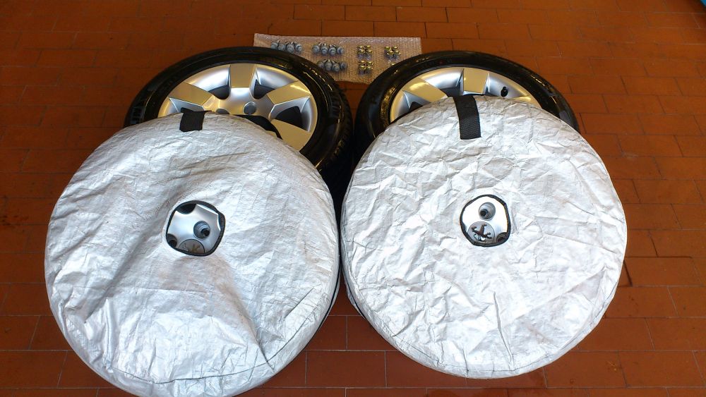 ZUBEHÖR: original Peugeot Radbolzen (16Stk.) , original Peugeot Kappen (16Stk.) und 4 Komfort-Reifentaschen