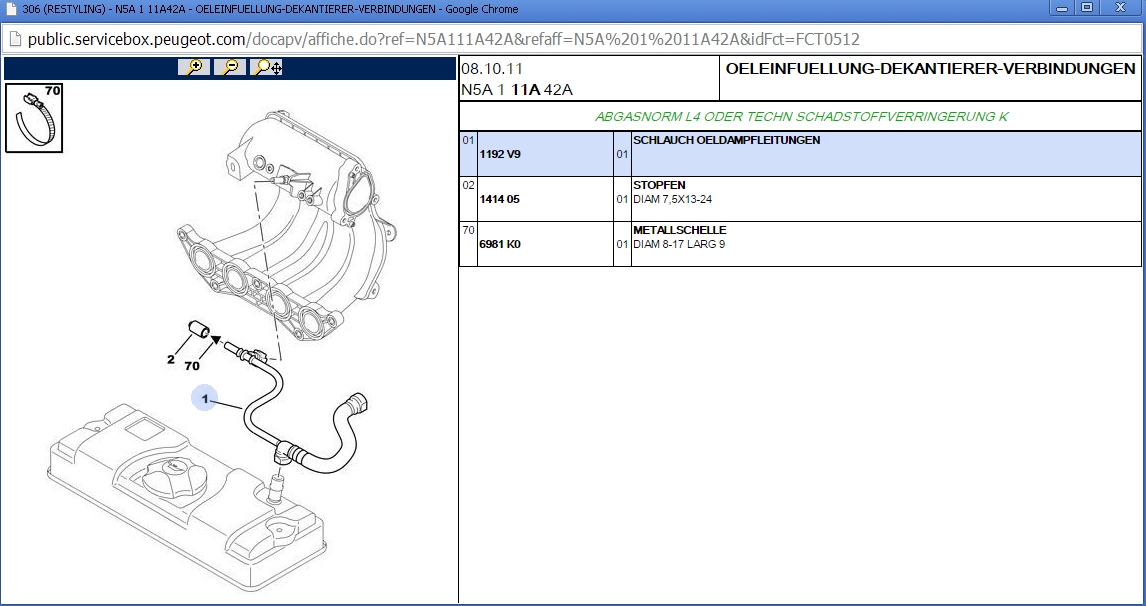 Teilenummer ist 1192 V9 für Abgasnorm L4.