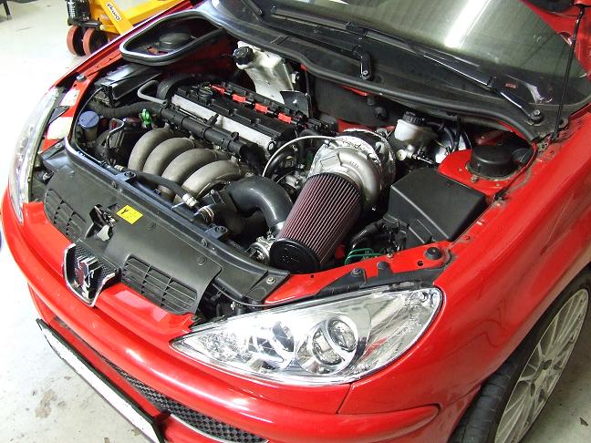 Es handelt sich dabei um einen Peugeot 206 RC der von einer professionellen Tuningfirma in Holland ( Dp-engineering) auf Turbo aufgebaut wurde.