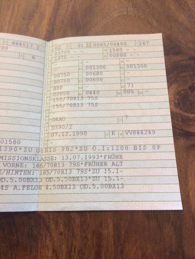 Die Zulassungsstelle hat ja gemeint, dass das Auto ja schon 12 Jahre abgemeldet ist, haben sie keine Unterlagen mehr und meinten ich soll das direkt mit dem TÜV regeln. Der TÜV hat gesagt, ich soll so ein Datenblatt mitbringen, sonst könnten die mit dem Auto nichts anfangen.
