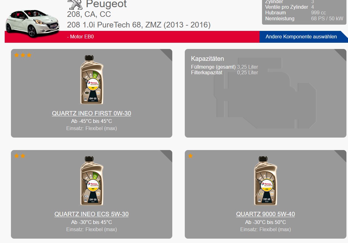 Ja, die Verpackung ist neu. Und ja, Du hast vmtl. das falsche Öl bekommen. Du benötigst ziemlich sicher das Total Quartz Ineo ECS und hast wahrscheinlich das MC3 bekommen, das hat ne BMW-Freigabe. Auf Deinem muss ne Peugeot-Freigabe stehen, vmtl. die B71 2290. Es gibt für Peugeot auch noch andere Spezifikationen, das hängt von deinem Motor ab. Kannst aber auf der Total-Seite über den Schmierstoff-Finder raussuchen.daskalos hat geschrieben: ↑Sa 19.09.20 20:57Jetzt - ne Woche später - sehe ich zufällig, dass das goldene a) weniger kostet, als das schwarze, b) das schwarze immernoch vorhanden ist c) das schwarze für Peugeot ist, das goldene für BMW und Porsche.
