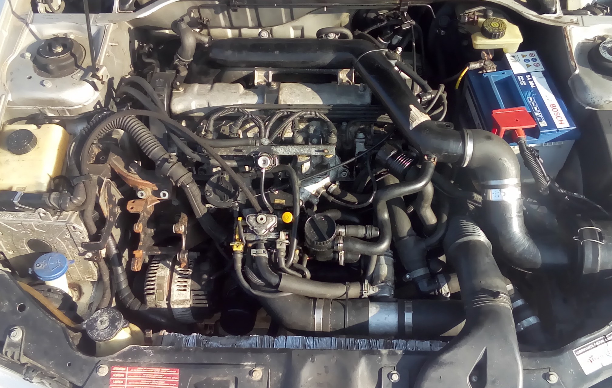 Wie oben beschrieben ist ein RGX mit großen LLK und EEPROM verbaut. Laufleistung des Motor keine 80tkm - 0 Ölverbrauch, 0 Wasserverbrauch, 0 komische Geräusche, 100% Druck! Öldruckanzeige kalt = 6bar, warm selbst im Leerlauf 3bar). Lader in gutem Zustand, Kraftstoffverbrauch überraschend günstig (8-9l/100km). Das ganze ist kombiniert mit einem Getriebe aus dem 306 Turbodiesel welches für gallische Verhältnisse sehr lang übersetzt (z.B. 2 Gang bis 96km/h GPS).