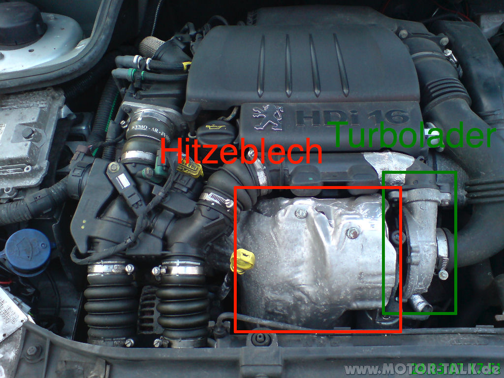 Heute morgen beim Auffahren auf die Autobahn machte es leise "plopp" und ich kam nur noch mit Gewalt über 90 km/h raus. Ein Stopp bei der ersten Gelegenheit zeigte, dass der Schlauch (siehe Anhang), wo "Hitzeblech" drübersteht ein Stück weit unter der Schelle rausgerutscht ist und neben der Öffnung wohl ein wenig Öl rauskam. Ausserdem ist rechts (grüne Box) der Turbo verrußt (um ein schmales Metallrohr herum), da hat eine Suche aber gezeigt, dass das evtl. normal ist?