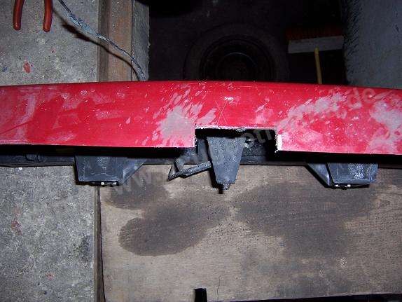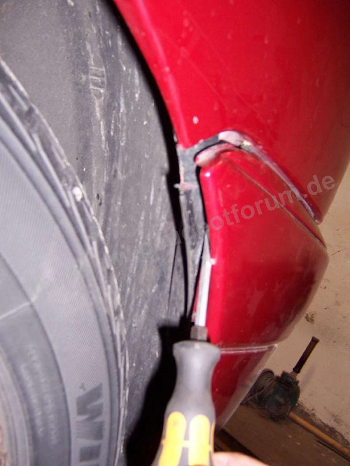 Dazu die Hecksch?rze an das Fahrzeug halten und mit einem Edding markieren was von dem Kunststoff weg mu?. Es ist nicht viel. Ich hab das ganze mit einer kleinen Eisens?ge und einem Seitenschneider gemacht