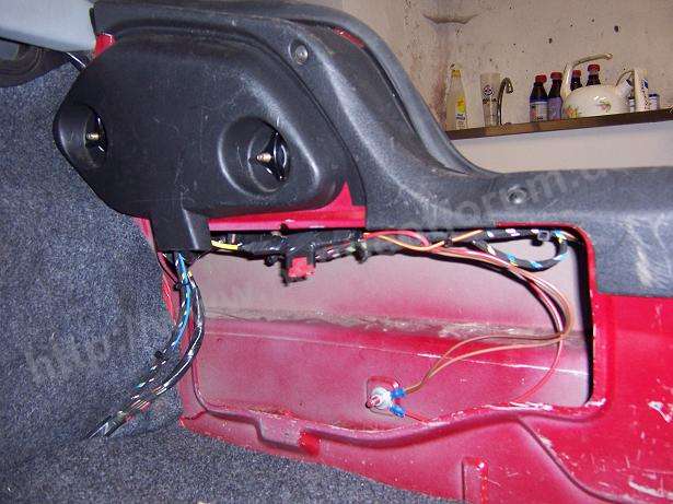 Abdeckkappe vom R?cklicht wieder montieren. Jetzt wird der Kabelbaum, der am Heckabschlussblech r?ber auf die linke Seite geht, nach ca. 20cm auf eine L?nge von ca. 10cm aufgedr?selt. Dort m?ssen 2 gelbe Kabel raus gesucht werden. Tip: Erst einmal die stelle die aufgedr?selt werden mu? mit Isolierband am anfang und ende umwickeln!