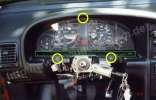 jetzt die gr?n markierte leiste nach oben abziehen. diese ist nur jeweils links und rechts gesteckt. danach die gelb markierten schrauben (bild 2) l?sen. jetzt kann man die anzeigeeinheit vorsichtig rausziehen, am besten immer oben ein st?ckchen, dann unten usw. irgendwann bekommt man sie richtig zu fassen. die anzeigeeinheit soweit rausziehen, dass man die kabel dahinter gel?st bekommt. die stecker haben jeweils eine abziehsicherung, das macht sich am besten zu zweit. eigentlich sind die kabel lang genug, um sich nicht verrenken zu m?ssen, lediglich ein gr?ner stecker auf der linken seite hatte etwas zu kurze kabel. dabei aufpassen, dass die leiterbahnen dahinter keinen schaden nehmen.