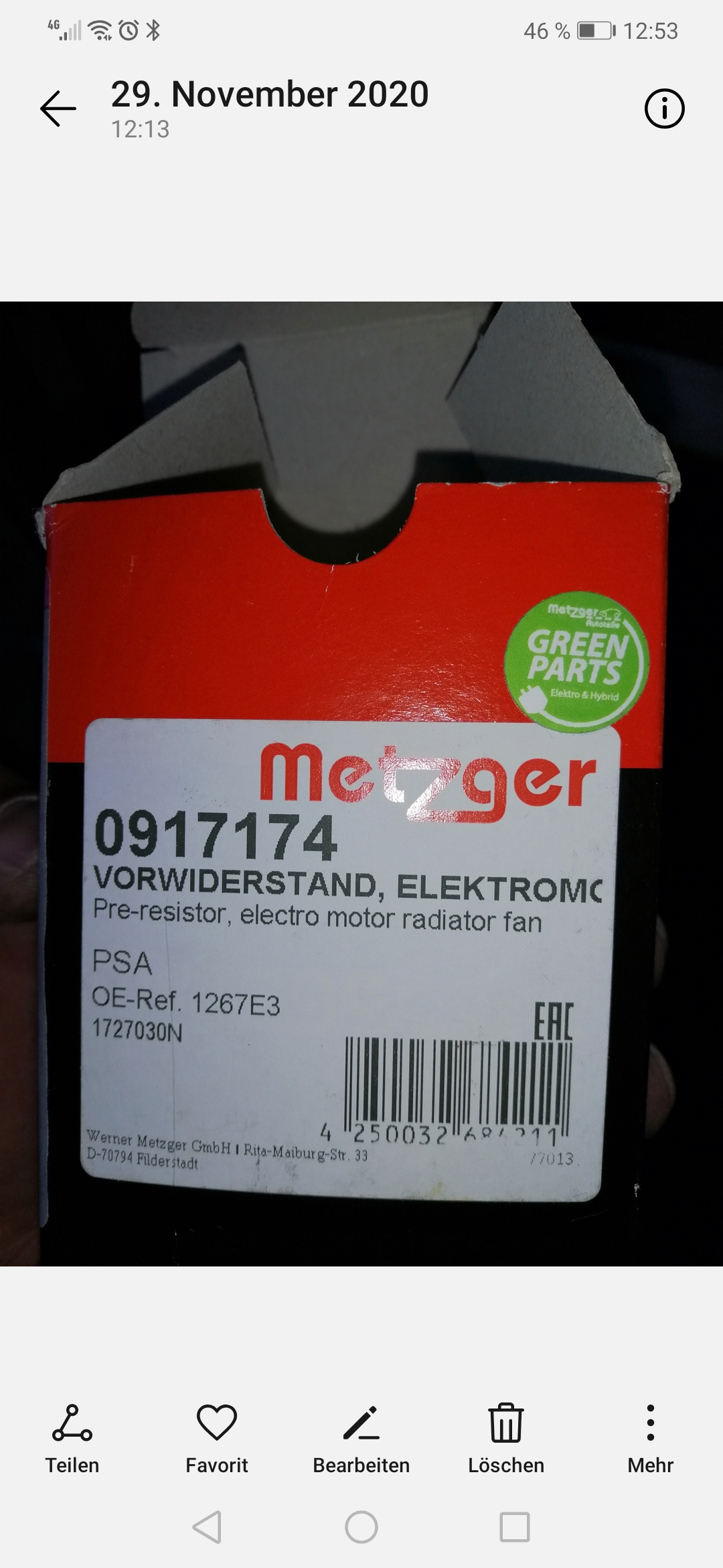 Peugeot hat zwischenzeitlich eine Änderung eingeführt, dass jetzt der Widerstand auch einzeln erworben werden kann.