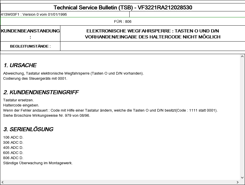 Leitungen hinter der Wegfahrsperren-Tastatur sind in Ordnung und nicht gebrochen ???