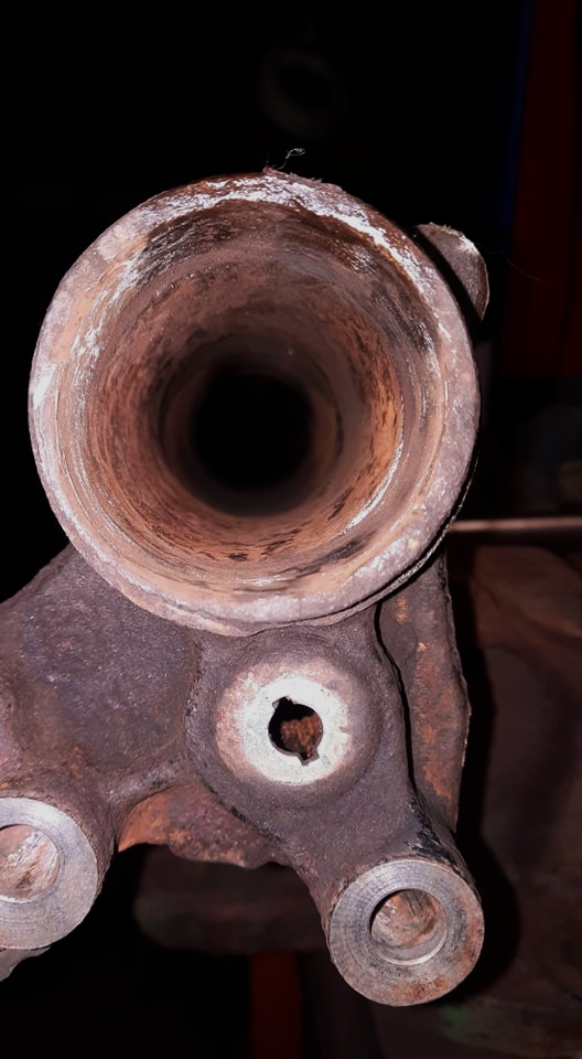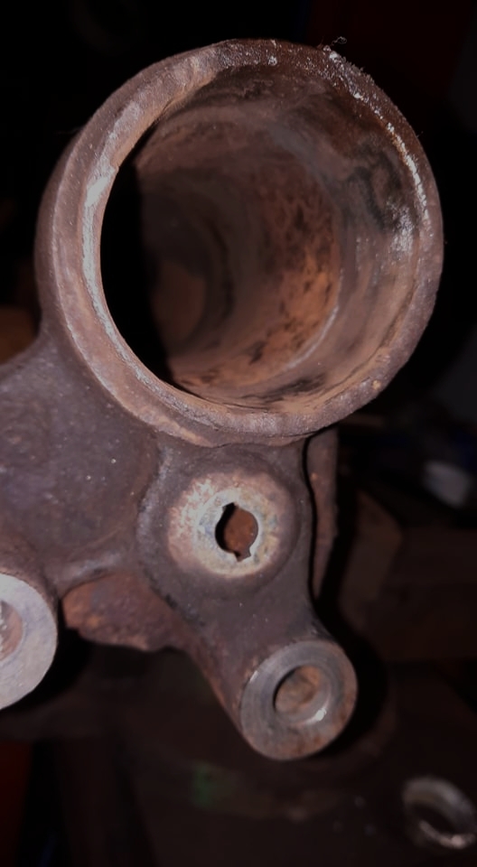 Dein Gussteil wwird wohl rettbar sein. Ganz genau wird sich das allerdings erst zeigen, wenn der Achsbolzen draussen ist.