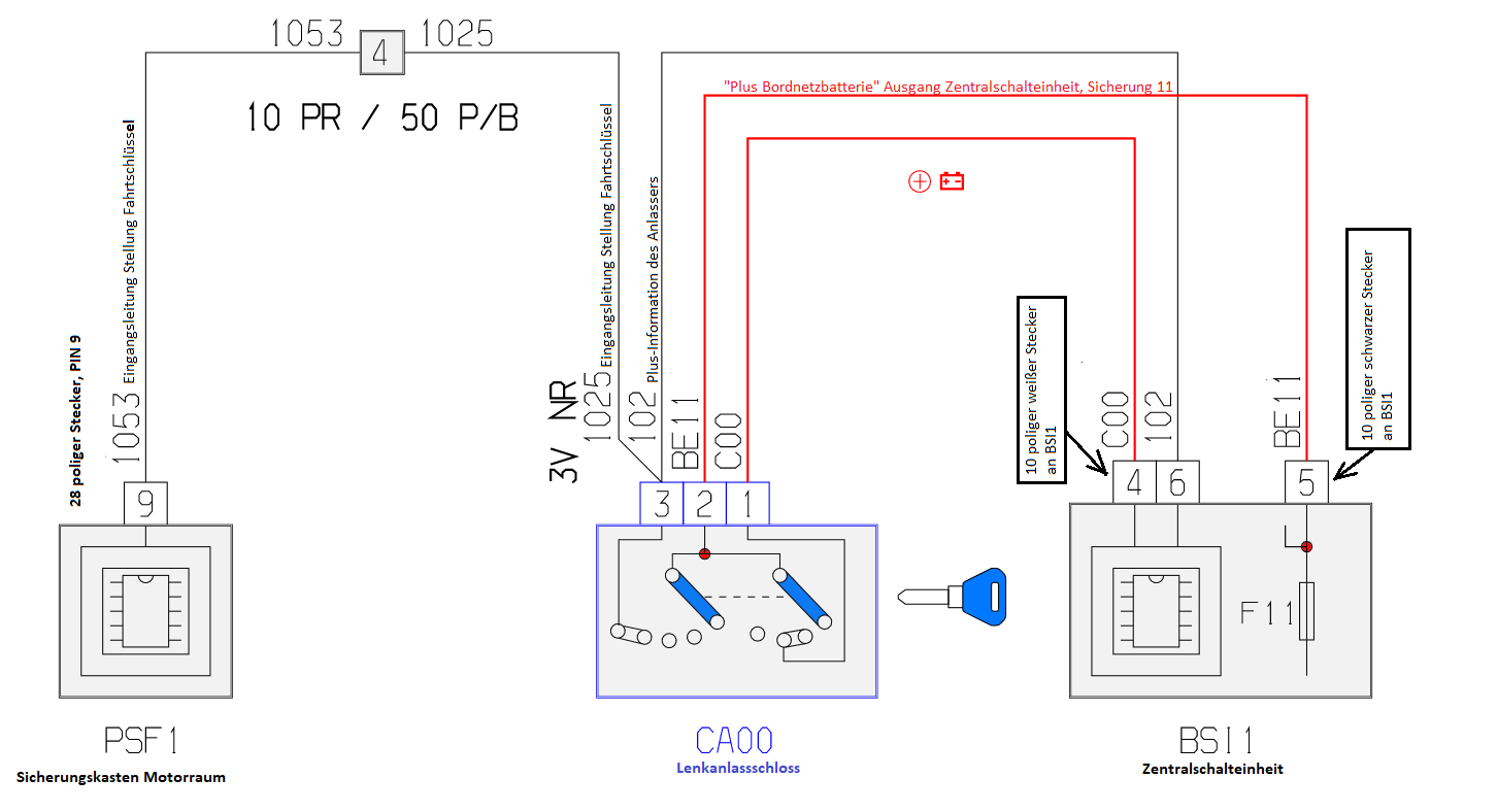Über die Schalteinheit - Sicherungskasten Motorraum wird geschaltet: