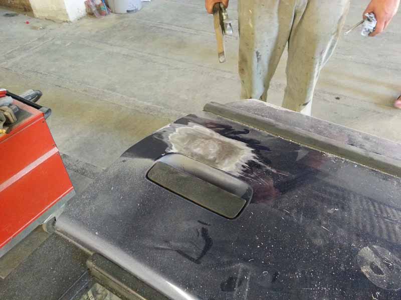 hier noch ein paar pics. Damit nicht in ein paar monaten der Spachtel hochkommt werden Dinge wie das Cleanen der Türschlösser und Blinker nach dem verschweissen noch zusätzlich verzinnt.