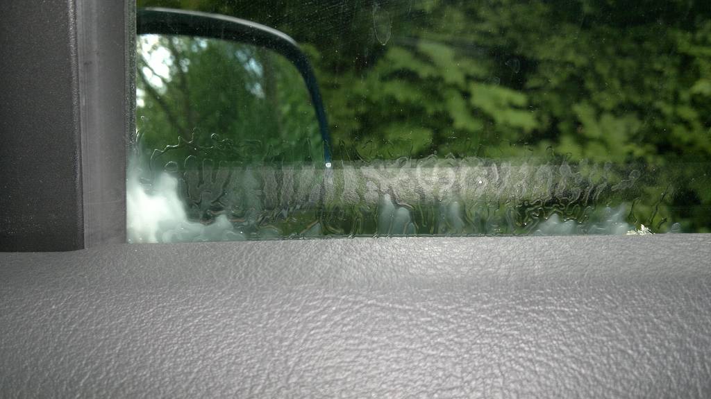 Momentan ist es nur an einer Ecke, am Übergang zum kleinen Dreiecksfenster vorne. Ist auch nur an dieser Scheibe momentan.