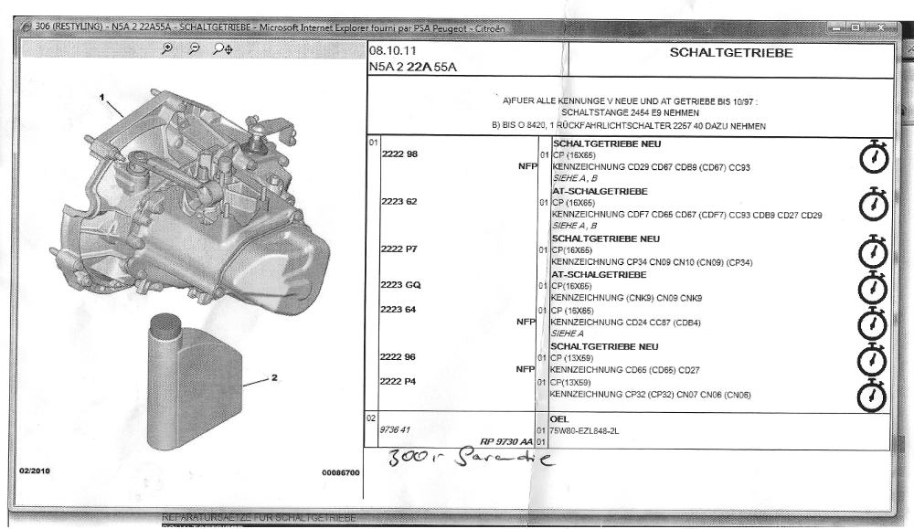 Da der 306er relativ schwer ist und hier zusätzlich der Gußblock die Situation erschwert, solltest du darauf achten, keine allzu dicken Reifen zu montieren und die Kupplung mit etwas Gefühl zu bedienen. Die Getriebe wurden ursprünglich für Kleinwagen von 600-800kg mit 13"-Rädern konstruiert, bei denen die Haftgrenze der Reifen vor der Schmerzschwelle des Antriebs erreicht wird. Sie sind dann eher als Notmaßnahme an solchen Dickschiffen wie dem 306 montiert worden und haben es dort insbesondere bei digitalen Kupplungsfüßen nicht leicht. In einigen Getrieben, insbesondere in den 306ern und den sportlicheren 106ern waren etwas stabilere Differentiale montiert, die aber auch auch nicht wesentlich haltbarer sind.