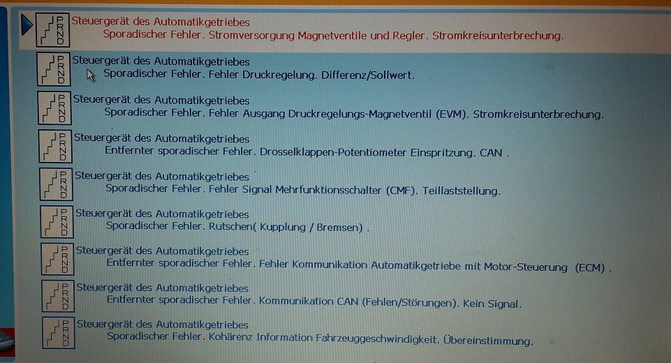 Versuchs vielleicht mal mit nem Bosch-Dienst, bzw mit jemandem der einen Boschtester hat. meiner Erfahrung nach haben die bislang praktisch jedes Automatik-Getriebe zumindest auslesen können.Mr Silverball hat geschrieben:Leider fehlt mir noch die DAM. Das PP2000 kennt das Automatiksteuergerät nicht und so kann ich die einzelnen Ventile nicht prüfen.