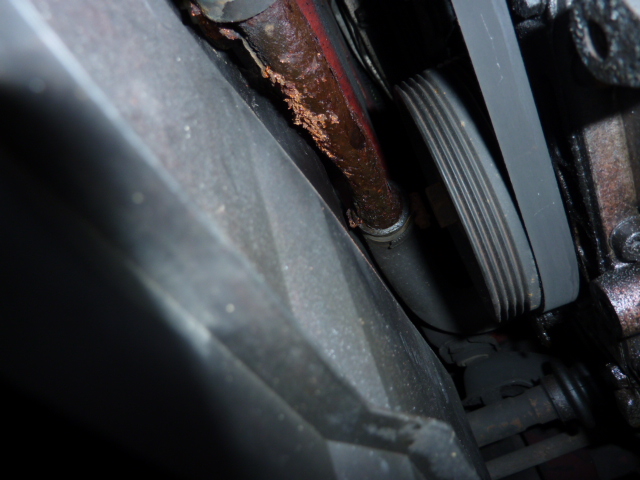 Jetzt habe ich festgestellt, dass ein Verbindungsrohr vom Kühlsystem ordentlich angegammelt ist und ab und an durchnässt.