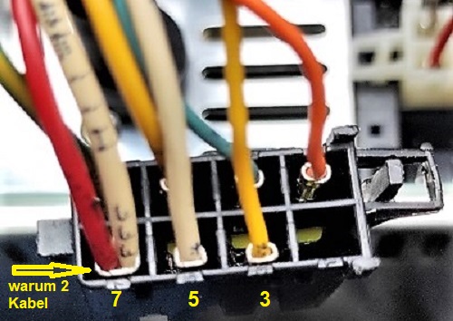 und jetzt geht es los, was ich nicht verstehe, an Pin 7, was Dauerplus ist, sind 2 Adern, einmal rot und einmal weis (warum)