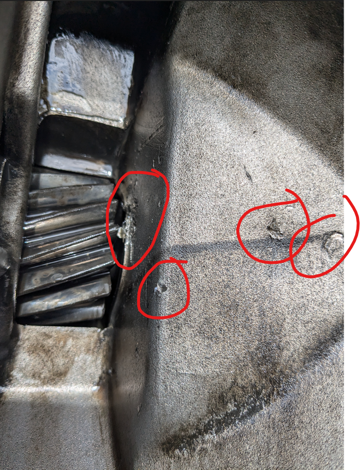 Die Fotos sind leider etwas schwammig. Check die Ausgleichs- und Kegelräder auf Beschädigungen.