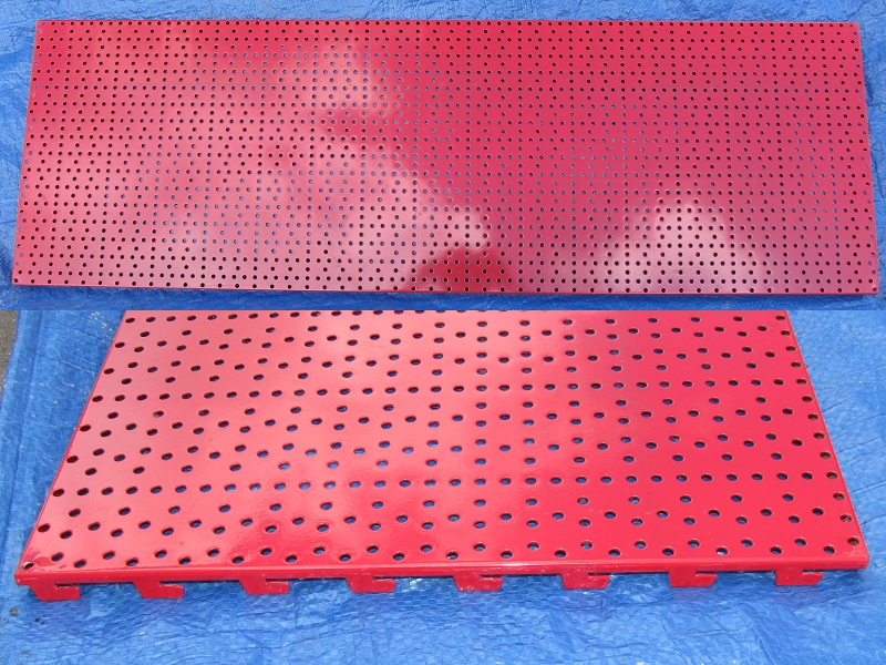 Mir sind zufälligerweise einige Lochwandpaneele für günstiges Geld zugelaufen. Leider musste ich alle nehmen und jetzt hab ich einige über. Die Dinger sind 125cm breit und 40cm hoch. Sie lassen sich mit den handelsüblichen Regalschienen verheiraten. Farbe ist RAL3000. Der Lochdurchmesser beträgt 5,5mm. Zustand duch die Bank super.