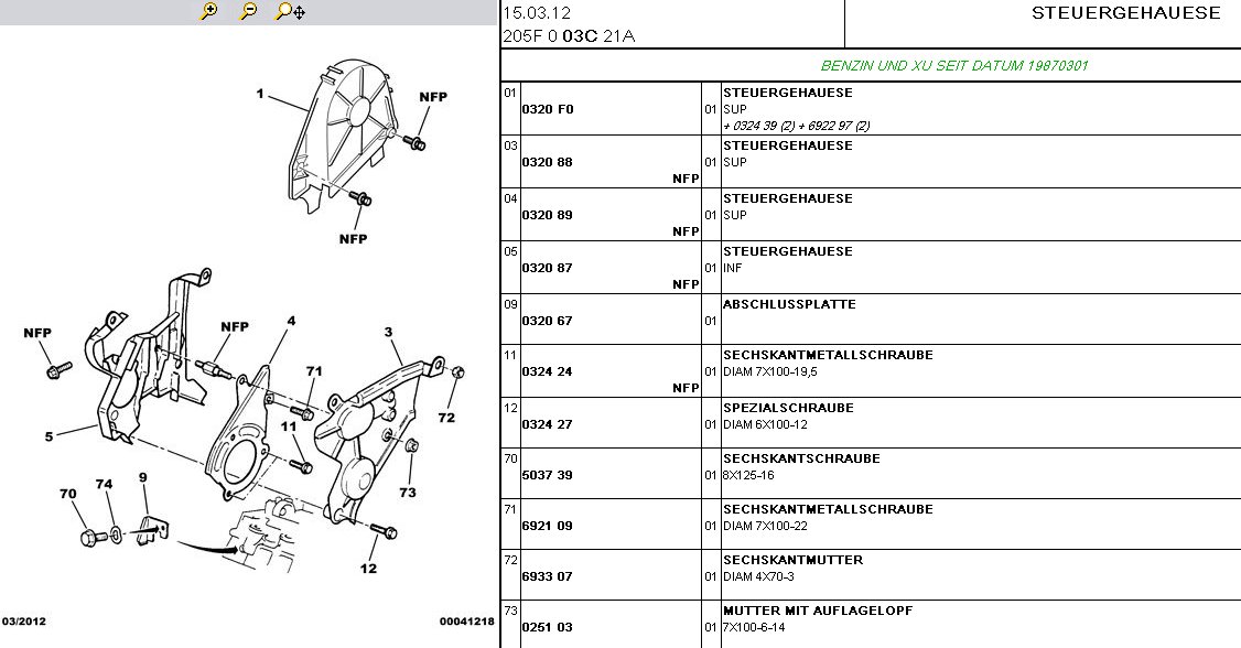 Ich benötige also den unteren Teil der Zahnriemenabdeckung. Hat auch ne Teilenummer: 032089. Die Teilenummer ist wichtig, da es da verscheden Versionen gibt.
