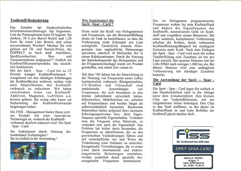 Das funktioniert einwandfrei. Allerdings ist die Ersparnis anfangs nicht so hoch. Bei unserem 206 ging der Verbrauch um ca. 10% zurück. Nach Einbau eines Tuningwiderstandes sowie eines Spritsparmagneten (gibt's beides in der Bucht) ging der Verbrauch nochmals um 5% zurück. Nach 3 Wochen und dem Einbau weiterer nützlicher Extras (z.B. Verwendung von 3 Packungen Hochleistungszündfunken) lag der Verbrauch sogar bei 0 Litern. Inwieweit der Transport des nach Einbau der schönen Sachen nicht mehr starten wollenden Fahrzeuges auf einem Abschleppwagen das Ergebnis verfälscht hat, muss ich noch in weiteren Tests herausfinden. Ich werde hier berichten. Derzeit steht der Wagen leider in der Werkstatt, da er nach der Montage der verlustarmen kabellosen Zündkabel nur noch schlecht anspringt...