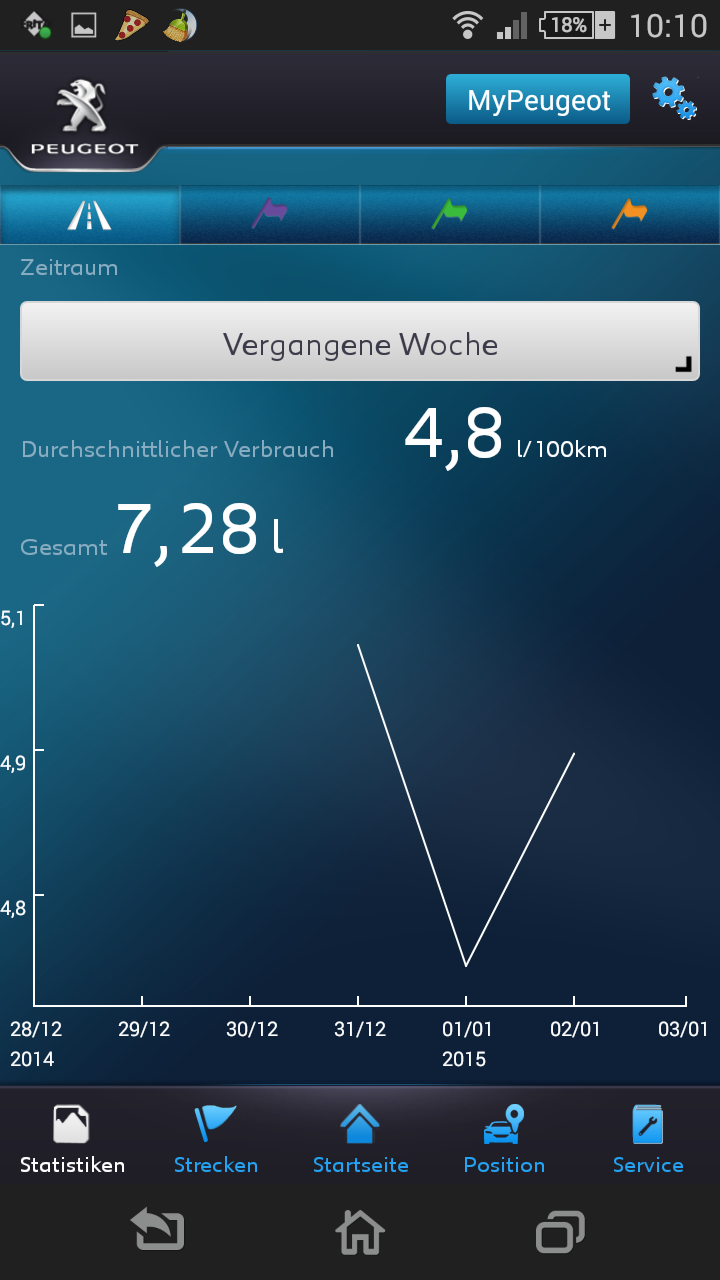 Der Verbrauch des 2,0 BlueHDI150 liegt, wenn man sich zurückhält um die 4,8 Liter im Durchschnitt. Kein Witz, ich lade Fotos von Link MY Peugeot hoch. Da steht es Schwarz auf Weiß.
