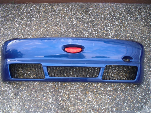 Die Heckstoßstange ist in Chinablau (EGED) lackiert und leider an der linken Seite dank eines Parkremplers ein klein wenig gerissen. Müsste dann repariert werden und dann komplett lackiert werden.