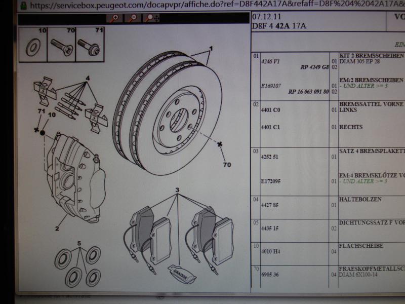Das müsste eine Brembo-Bremse sein, aber die Bleche kenn ich nicht und gibts auch bei Pug nicht (s. ET-Bild). Wie sind die denn festgemacht??? Die Kolben müssen komplett zurückgedrückt sein, sonst bekommst du die Klötze nicht rein.