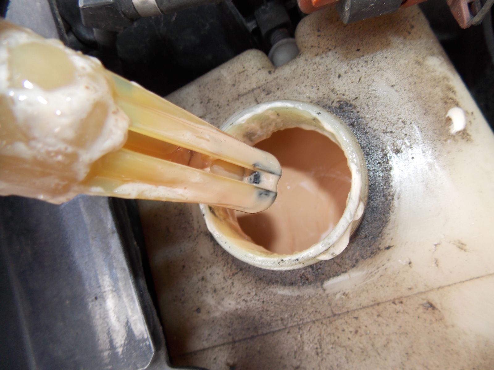 . Kann das sein das jemand da Kühlwasser ausversehen reingekippt hat? Servo Öl sieht für mich aber ganz anders aus.... Das ist normalerweise rötlich klar, und keine massive Öl Emulsion wie hier offensichtlich. An einen defekt der kopfdichtung erinnert mich die pampe irgendwieDark Star *CTi* hat geschrieben:Mein Servoöl sieht so aus, seit ich den gekauft habeMacht sich bis jetzt aber nicht negativ bemerkbar.
