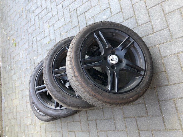 CMS Felgen in schwarz LK 4x108, MK 65,1, ET 15, montiert sind Sportreifen von Federal 595 RS-R, Profil noch 95%.
