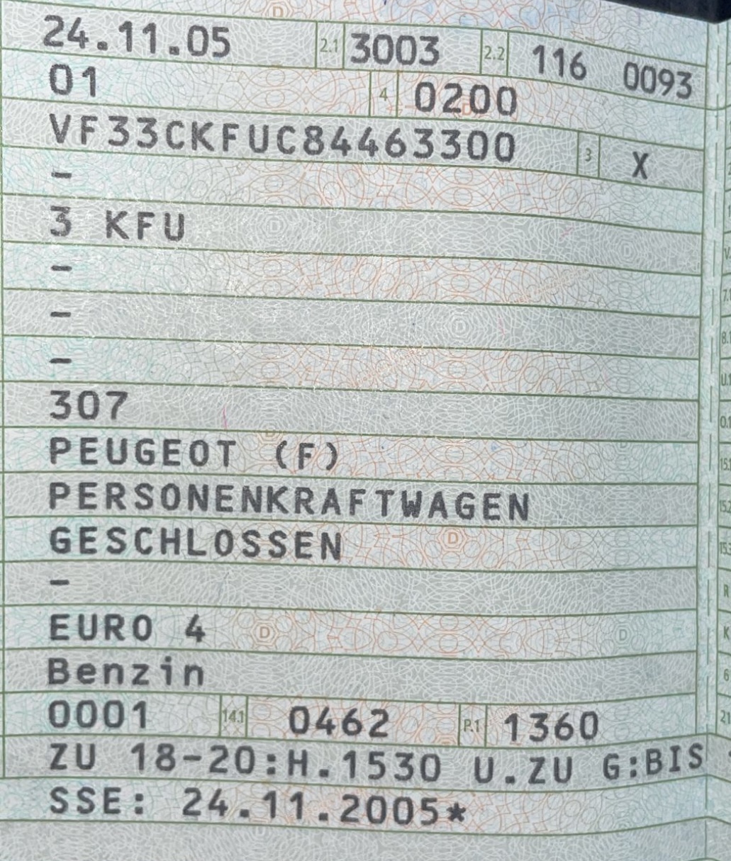 Oh super für die schnelle Antwort werde ein Teil von meinem Fahrzeugschein reinstellen